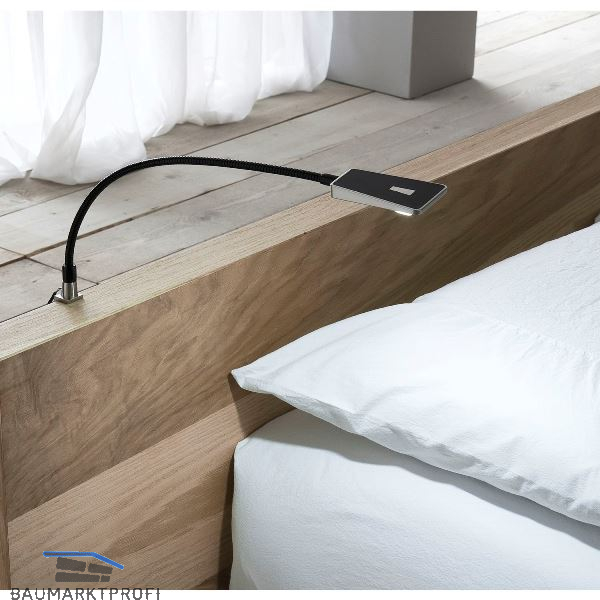 Bettpaneelleuchte mit 400 mm langem flexiblem Arm und Dimmfunktion.