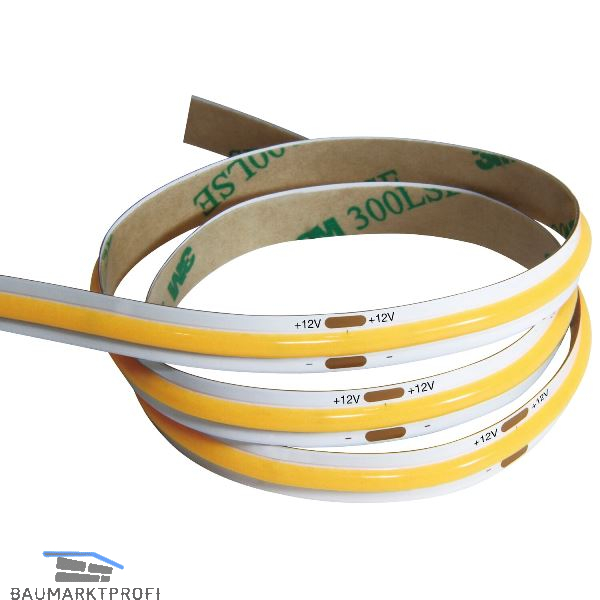 LED-Band mit COB-Technologie mit 504 LED/m, die unter einer gemeinsamen Phosphorschicht liegen.