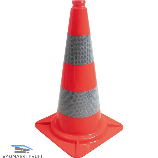Zum Hinweis auf Gefahrensituationen im Straßenbau, bei Vermessungsarbeiten, auf Baustellen und bei Unfällen, nahtlos aus Weich-PVC gefertigt und so witterungsbeständig, unzerbrechlich, standfest, tagesleuchtend und stapelbar.