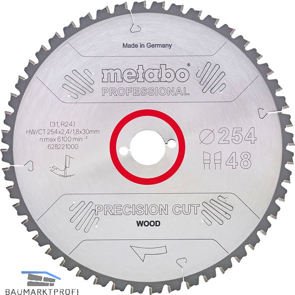 METABO HW-Kreissägeblatt Precision Cut 254x2,4x30 mm Z48 WZ neg.