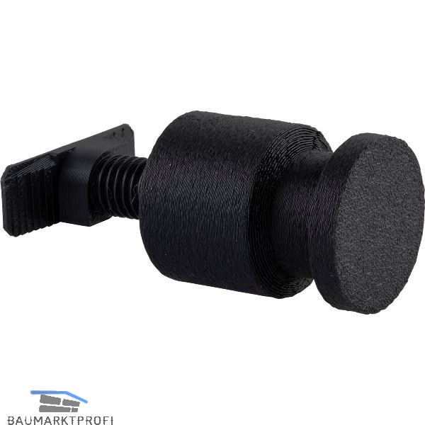 Montage: Der Montagezapfen wird zwischen das Paneel gesteckt und dann mit einem Schlitzschraubendreher um 90° nach rechts gedreht, danach wird der Haken aufgeschraubt und damit festgezogen.