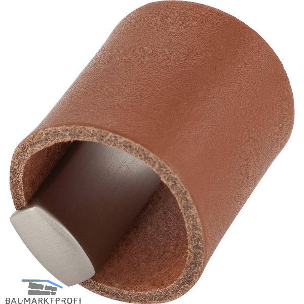 Möbelknopf Drum LA 32, Breite 40 mm, Leder/ZN cognac/Edelstahl Effekt