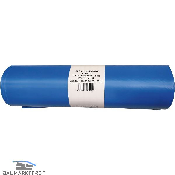 Müllsäcke Polyethylen 120 Liter, 25 my 700 x 1100 mm ohne Zugband blau