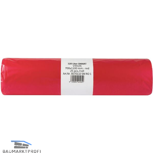 Müllsäcke Polyethylen 120 Liter, 25 my 700 x 1100 mm ohne Zugband rot