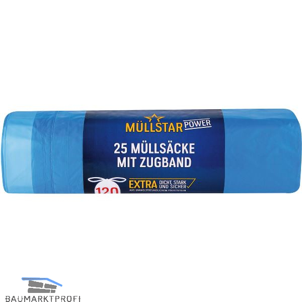 Müllsäcke Polyethylen 120 Liter, 30 my 700 x 1000 mm mit Zugband blau