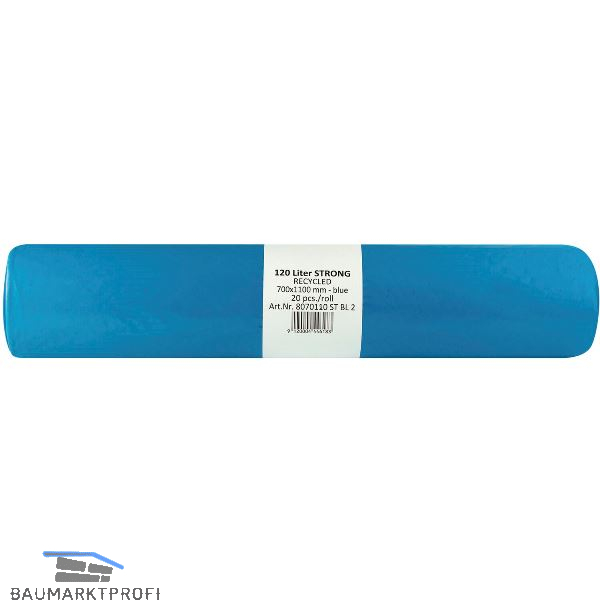 Müllsäcke Polyethylen 120 Liter, 45 my 700 x 1100 mm ohne Zugband blau