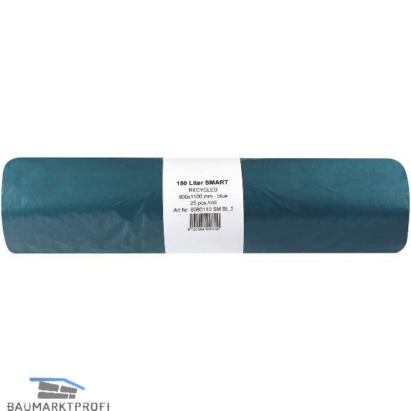 Müllsäcke Polyethylen 150 Liter, 37 my 800 x 1100 mm ohne Zugband blau