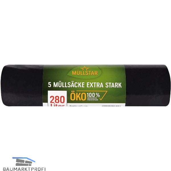 Müllsäcke Polyethylen 280 Liter, 60 my 1150 x 1350 mm ohne Zugband schwarz