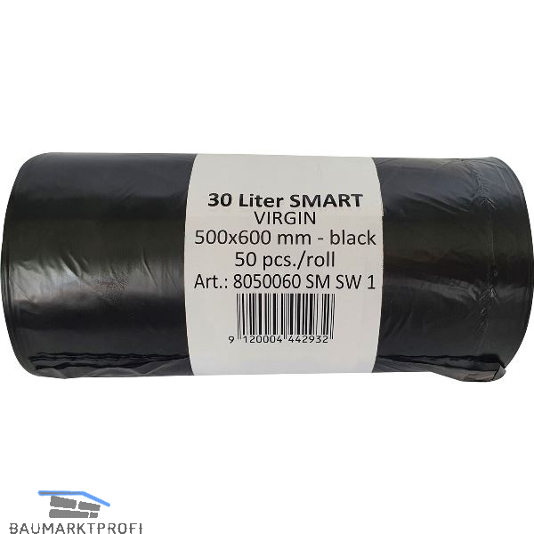 Müllsäcke Polyethylen 30 Liter, 11 my 500 x 600 mm ohne Zugband schwarz