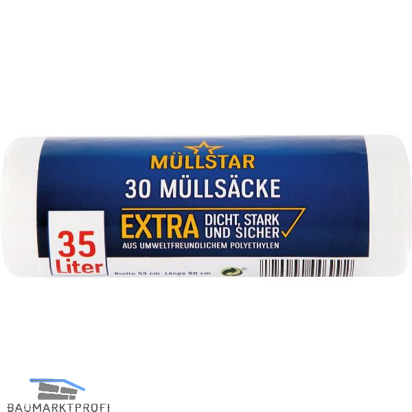 Müllsäcke Polyethylen 35 Liter, 10 my 530 x 600 mm ohne Zugband weiß