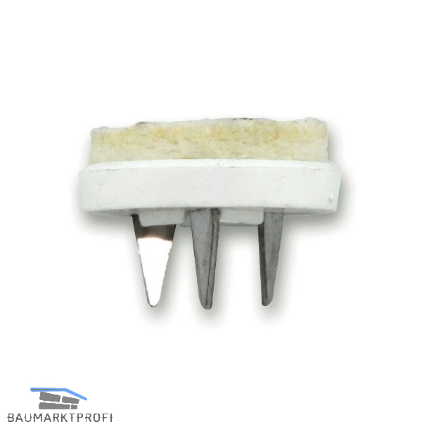 Nagelgleiter mit Filzauflage und 3 Einschlagdorne, rund, ø19, Kunststoff weiß