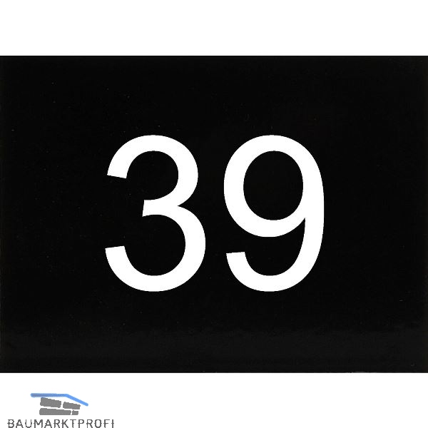 Nummernschild selbstklebend, 40 x 30 mm, Type 39, Kunststoff schwarz glänzend