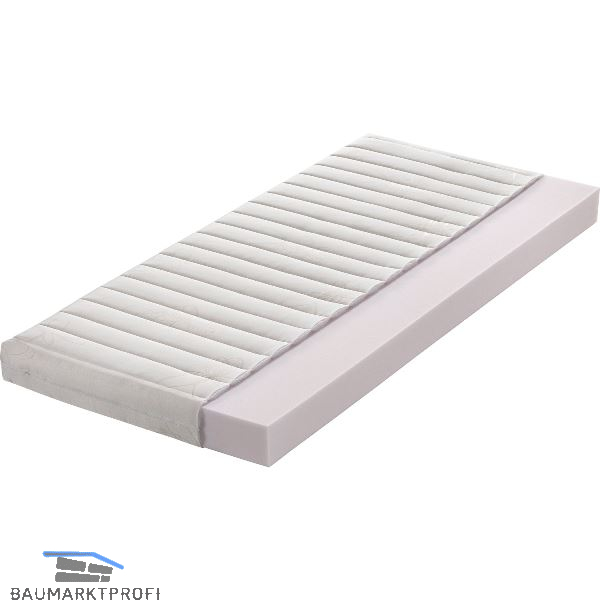 Bezug: Fix bezogen, gewebter Matratzenbezugsstoff (70% Polyester, 30% Polypropylen), leicht versteppt mit atmungsaktiver Klimafaser.