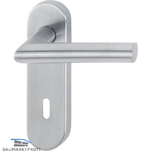 Objekt Drückergarnitur AMSTERDAM auf Kurzschild BB, Edelstahl matt