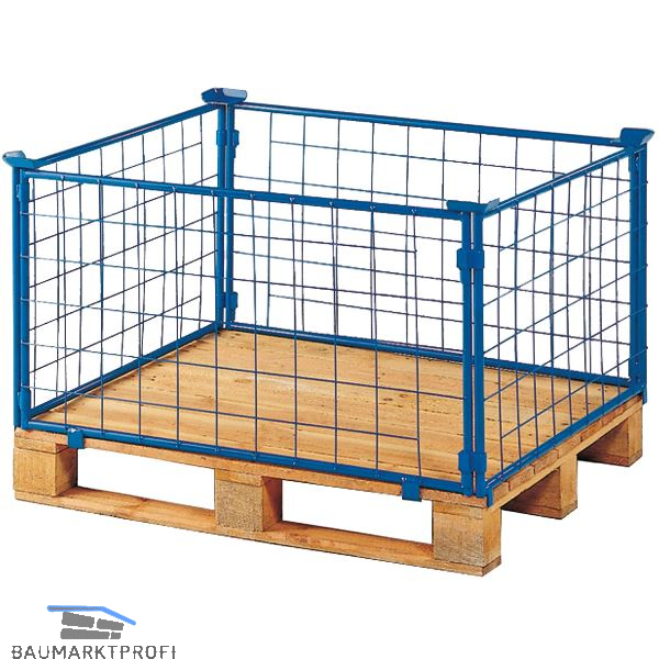 4-seitig geschlossen, Traglast 1500 kg, 4-fach stapelbar, Seitenteile aus Stahlgitter,Maschenweite 100 x 100 mm, Eigengewicht 18,5 kg.