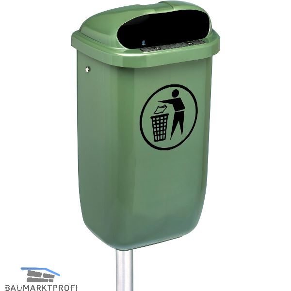 Abfallbehälter für den öffentlichen Verkehrsraum. Aus schlagzähem, UV-stabilisiertem Hart-Polyethylen (HDPE). Entleerung durch Aushängen des Körpers. Entleerung erfolgt mittels Dreikantschlüssel.