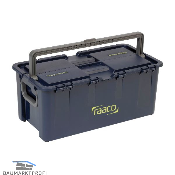 Resistent gegen Öle, Säuren und Basen, geringes Eigengewicht - hohe Tragfähigkeit, integrierte Gleiter aus Kunststoff, die empfindliche Oberflächen wie Fliesen oder Möbel schützen, voll versenkbare Tragegriffe, das heißt, die Koffer sind stapelbar.