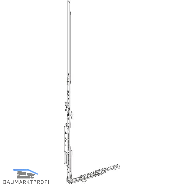System: ROTO NX Verwendung für: Holz Bandseite: universal Länge (mm): 600 Ablängbereich (mm): 200 FFH von - bis (mm): 431 - 710 Griffhöhe ab FUK mm: 195 Dornmaß (mm): 15 - 50 Ausführung: Eckumlenkung integriert, mit 1 Schließzapfen P Material: Stahl verzinkt silberfärbig Werksnummer: 795462