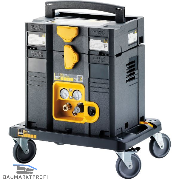 Perfekt im System: Die Kombinierbarkeit mit anderen Systainern, hervorragende Transporteigenschaften, Robustheit und optimale Bedienbarkeit sind die Stärken des SysMasters! In Kombination mit dem Rollbrett wird der SysMaster zum optimalen Begleiter für den mobilen Einsatz für Anwendungen wie z.B. Ausblasen, Klammern und Nageln oder Abdichten.