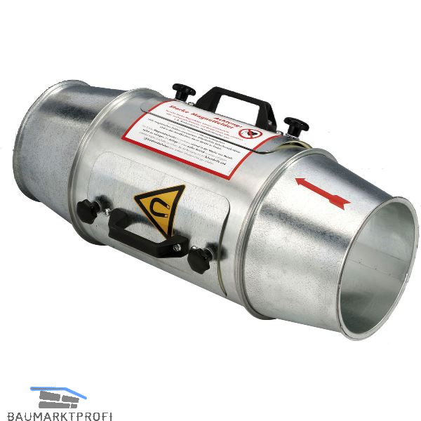 Der Eintritt von Metallteilen in Absaugsystemen kann oft nicht wirksam verhindert werden. Besonders hinter Zerkleinerungsmaschinen ist mit Metallteilen wie zB. Schrauben und Nägeln zu rechnen. Der Abscheider, mit starken Dauermagneten ausgerüstet, kann einen Teil dieser Metallteile aus dem Spänestrom herausziehen. Eine 100%ige Materialtrennung ist allerdings ausgeschlossen. Die Wirksamkeit des Abscheiders ist abhängig von der Materialdichte, der Teilegröße und der Luftgeschwindigkeit.