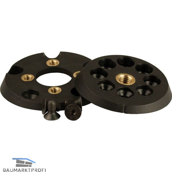 Adapter für die vereinfachte Befestigung von Holzfüßen an Tischplatten.