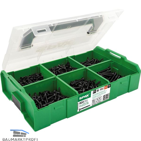 Inhalt 800 Stk. schwarze Spax für ästhetische Verbindungen im Möbelbau.