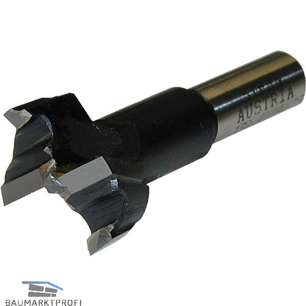 Hartmetallbestückter Beschlagbohrer für Bohrautomaten mit Zentrierspitze, 2 Vorschneiden und 2 Hauptschneiden