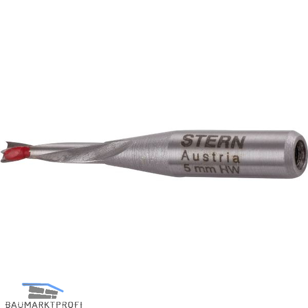 Spezialbohrer für Dübelbohrautomaten für Sacklöcher mit Zentrierspitze, 2 Vorschneidern und 2 Hauptschneiden für sauberen Lochrand an der Werkstückoberfläche.