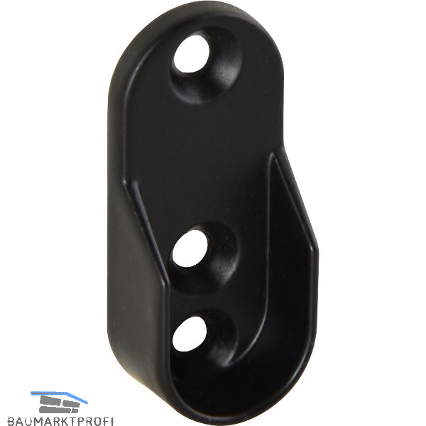 Schrankrohrlager Oval 1 für Schrankrohr, 3 Schraublöcher, Zink schwarz