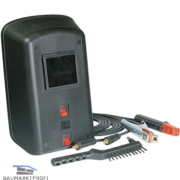 Lieferung inkl. Handschirm, Schlackenhammer mit Drahtbürste, Elektroden- und Massekabel.
