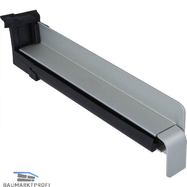 Durch starke Federung unverrückbarer Sitz. Durch das iWL-System (integriertes Wasser-Leit-System) wird bei Schlagregenbelastung des Fensterbanksystems das Flächenwasser kontrolliert nach außen abgeleitet. Die Dichtung übernimmt dabei gleichzeitig die thermisch bedingte Längsausdehnung der Fensterbank, so dass Putzrisse verhindert werden. Integrierter Dehnungsausgleich (3 mm)