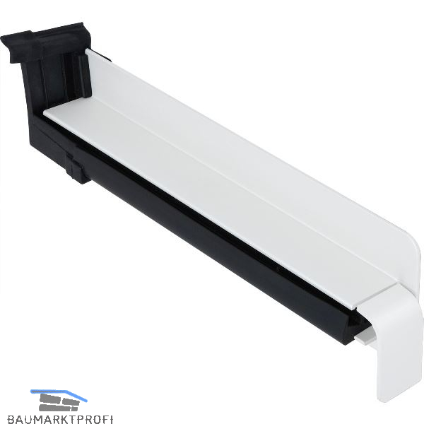 Durch starke Federung unverrückbarer Sitz. Durch das iWL-System (integriertes Wasser-Leit-System) wird bei Schlagregenbelastung des Fensterbanksystems das Flächenwasser kontrolliert nach außen abgeleitet. Die Dichtung übernimmt dabei gleichzeitig die thermisch bedingte Längsausdehnung der Fensterbank, so dass Putzrisse verhindert werden. Integrierter Dehnungsausgleich (3 mm)