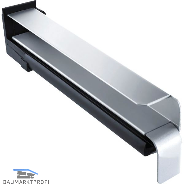 Durch starke Federung unverrückbarer Sitz. Durch das iWL-System (integriertes Wasser-Leit-System) wird bei Schlagregenbelastung des Fensterbanksystems das Flächenwasser kontrolliert nach außen abgeleitet. Die Dichtung übernimmt dabei gleichzeitig die thermisch bedingte Längsausdehnung der Fensterbank, so dass Putzrisse verhindert werden. Integrierter Dehnungsausgleich (3 mm)