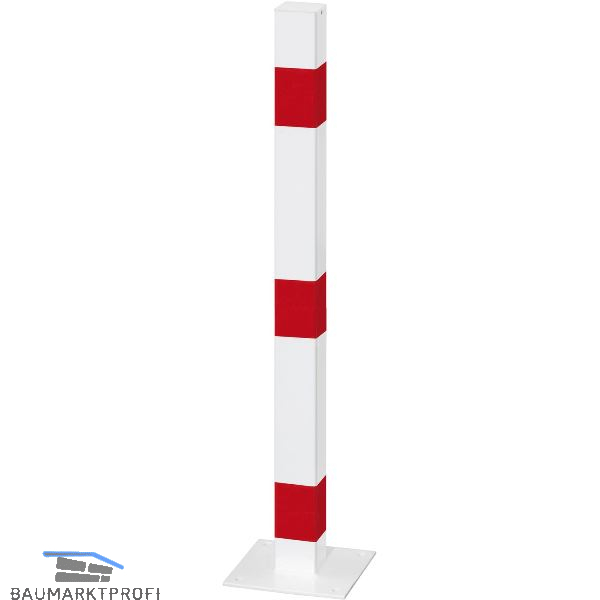 Befestigungsart: zum Aufschrauben Ausführung: feststehend Höhe (mm): 900 Stärke (mm): 70 x 70 Material: Stahl feuerverzinkt Oberfläche: weiß pulverbeschichtet mit 3 roten Reflexstreifen Bodenplatte Abmessung (mm): 200 x 200 Type: SPU 703 RW
