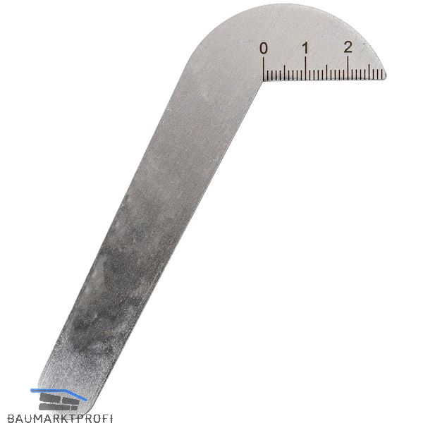 Aus Stahl, Messflächen geschliffen, mit mm-Teilung. Zum Prüfen des Anschliffs auf richtigen Spitzenwinkel und Mitte.Für Bohrer-ø bis 50 mm.