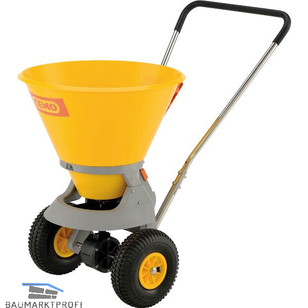 Für mittlere Streuflächen. Composite-Kunststoff-Rahmen, PE-Behälter für unterschiedliche Streumaterialien. Für den rauen Wintereinsatz, für Streusalz geeignet. Für den Einsatz in privaten und gewerblichen Bereichen. Robuster Aufbau, Achsen aus Edelstahl. Robustes Getriebe. Gummiräder luftbereift mit Winterprofil. Schubstange aus Edelstahl, dreifach längenverstellbar, klappbarer Stützfuß. Streumenge einstellbar mit festem Anschlag, verstellbarerer Streubreitenbegrenzer, mit Siebeinsatz. Mit 6 Streustufen, Streubreite bis 4 m.