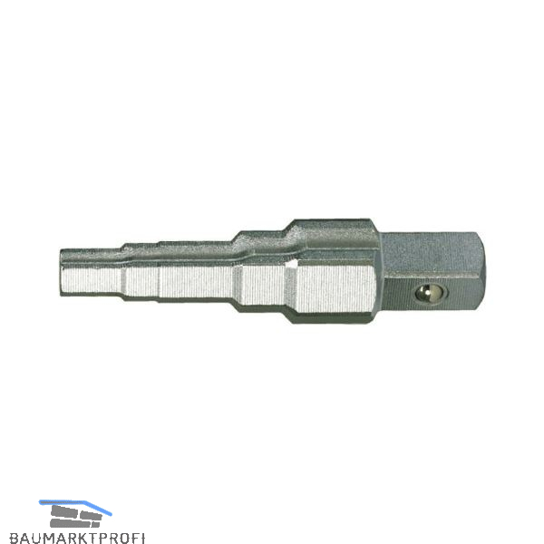 Kombiniert für Gas und Wasser, mit 1/2" Vierkant-Antrieb, mit Nut, verchromt, zum Ein- und Ausschrauben von Gewindenippeln.