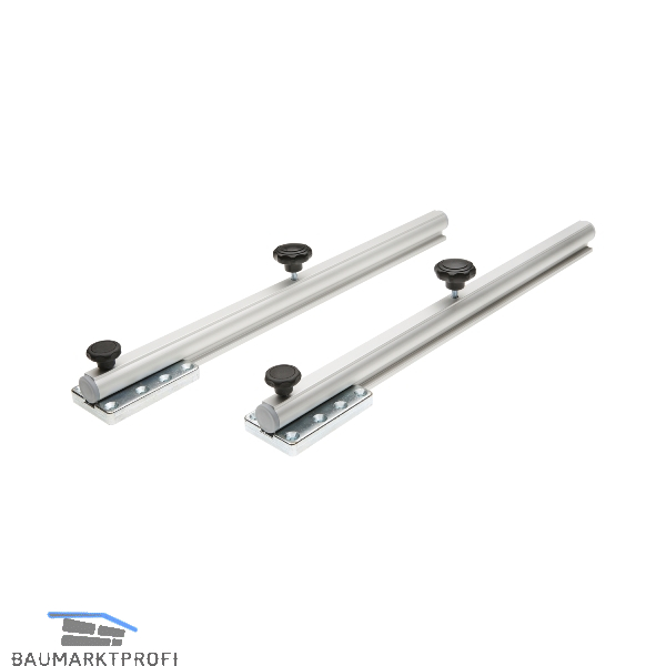 - Einfache Handhabung: T-Rohre in die Halterung unter der Tischplatte stecken, Anbauplatte darauf legen und diese mit den Sterngriffschrauben befestigen