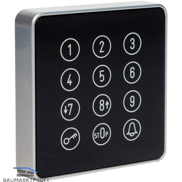 Nach korrekter Eingabe des Passiercodes wird über einen potentialfreien Relaiskontakt der entsprechende Antrieb betätigt.