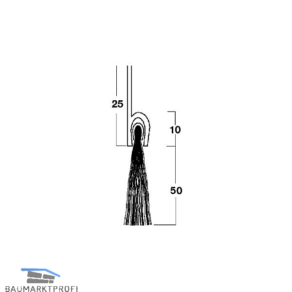 Türdichtungsbürste m. gerader Leiste, 2000 mm, Borsten 50 mm schwarz, Alu natur