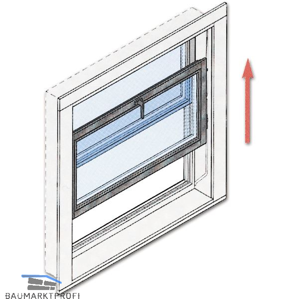 Der schiebbare Flügel wird seitlich in Kunststoffschienen geführt. Durch ein seitlich hinter dem Fensterfutter liegendes Gegengewicht wird eine problemlose und leichte Betätigung gewährleistet.