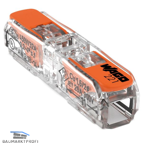 WAGO 221 1x4Qmm Durchgangs-Verbindungsklemme mit Betätigungshebel