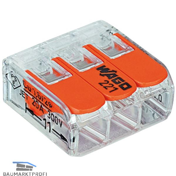 WAGO 221 3x4Qmm Verbindungsklemme mit Betätigungshebel