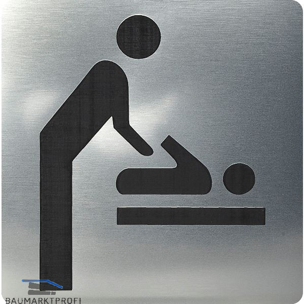 WC Symbol Wickelraum selbstklebend, 100 x 100 mm, Kunststoff Edelstahl-Effekt