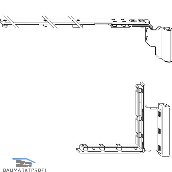 In Kombination mit Scherenlager SL.XL. Justierung zum Anheben und Absenken des Flügels (+3 / -2 mm), Kippöffnungsweite ca. 100 mm (profilbedingt).