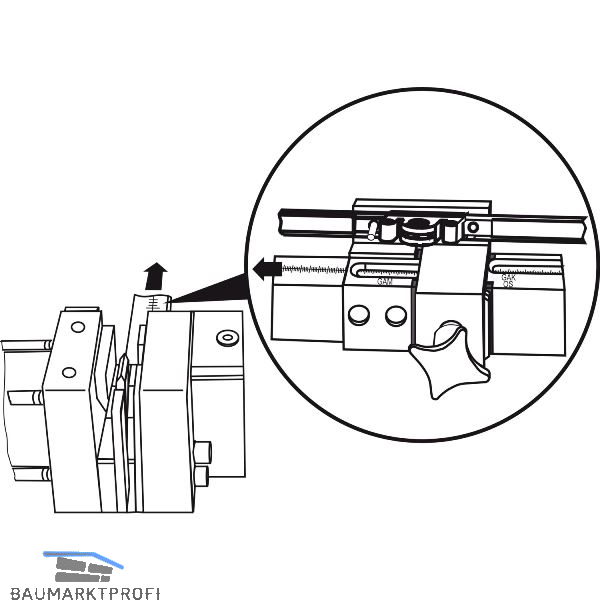 Passend zu Beschlagsstanze BST AP/FS. Maßliche Positionierung der abzulängenden Beschlagsteile. Ablängung von mittigen und konstanten Bauteilen möglich.