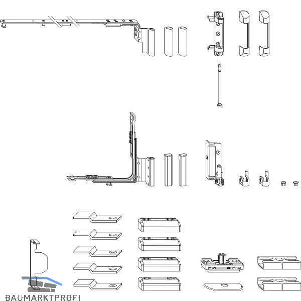 Die beigepackten Schließbleche für Falztiefe 18 bzw. 20 mm werden nur für die Montage am Holzrahmen unter dem Scherenlager eingesetzt und entsprechen nicht der Anforderung nach DIN 18104-2.
