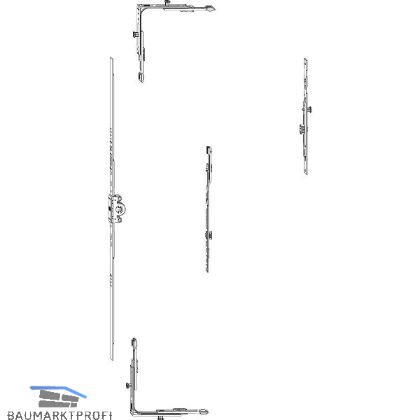 Lieferumfang:1 Getriebeschiene GAM.8002 Eckumlenkungen E111 Mittenverriegelung M.250-1Zusätzlich für nicht mittigen Griffsitz:1 Mittenverriegelung koppelbar MK.250-0