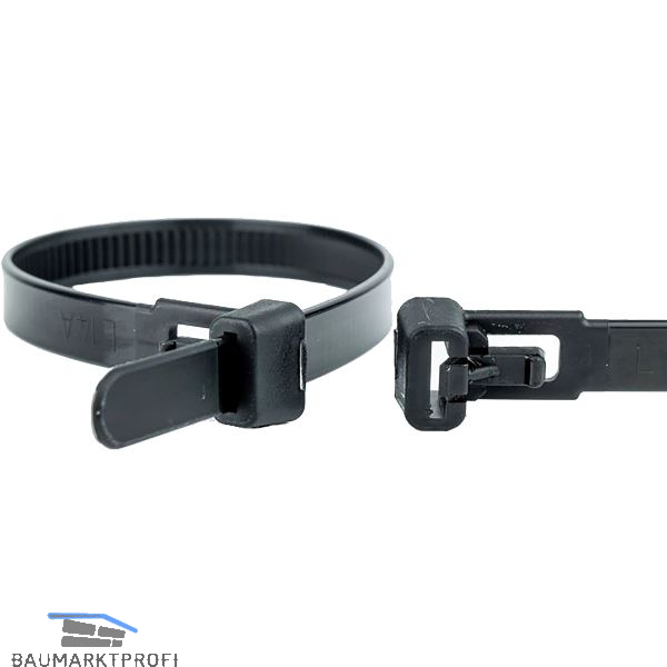 Wiederverwendbare Kabelbinder können nach Gebrauch wieder geöffnet und wiederverwendet werden.
