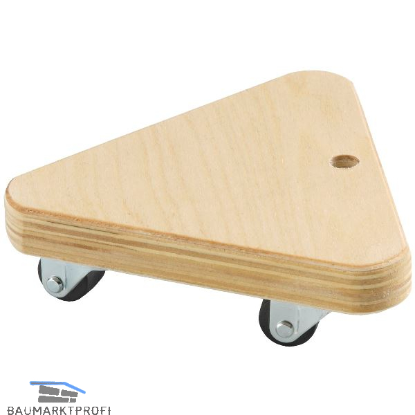 Multiplexplatte aus 18 mm Sperrholz, robust und formstabil mit drehbaren Kunststoffrädern.